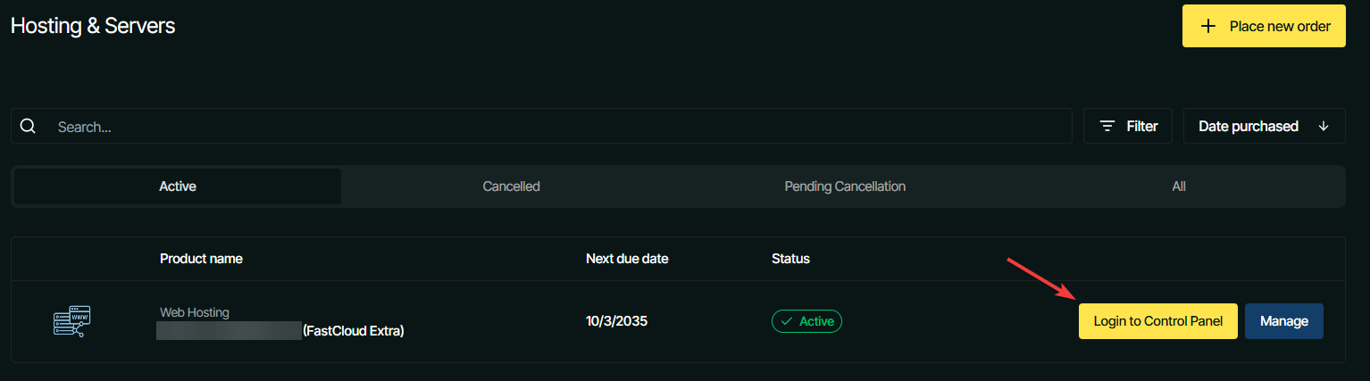 This will show you all the hosting plans, packages and servers you have with us. Simply click on Login to Control Panel next to the service you want to log into. That will direct you to and automatically log you into its control panel.
